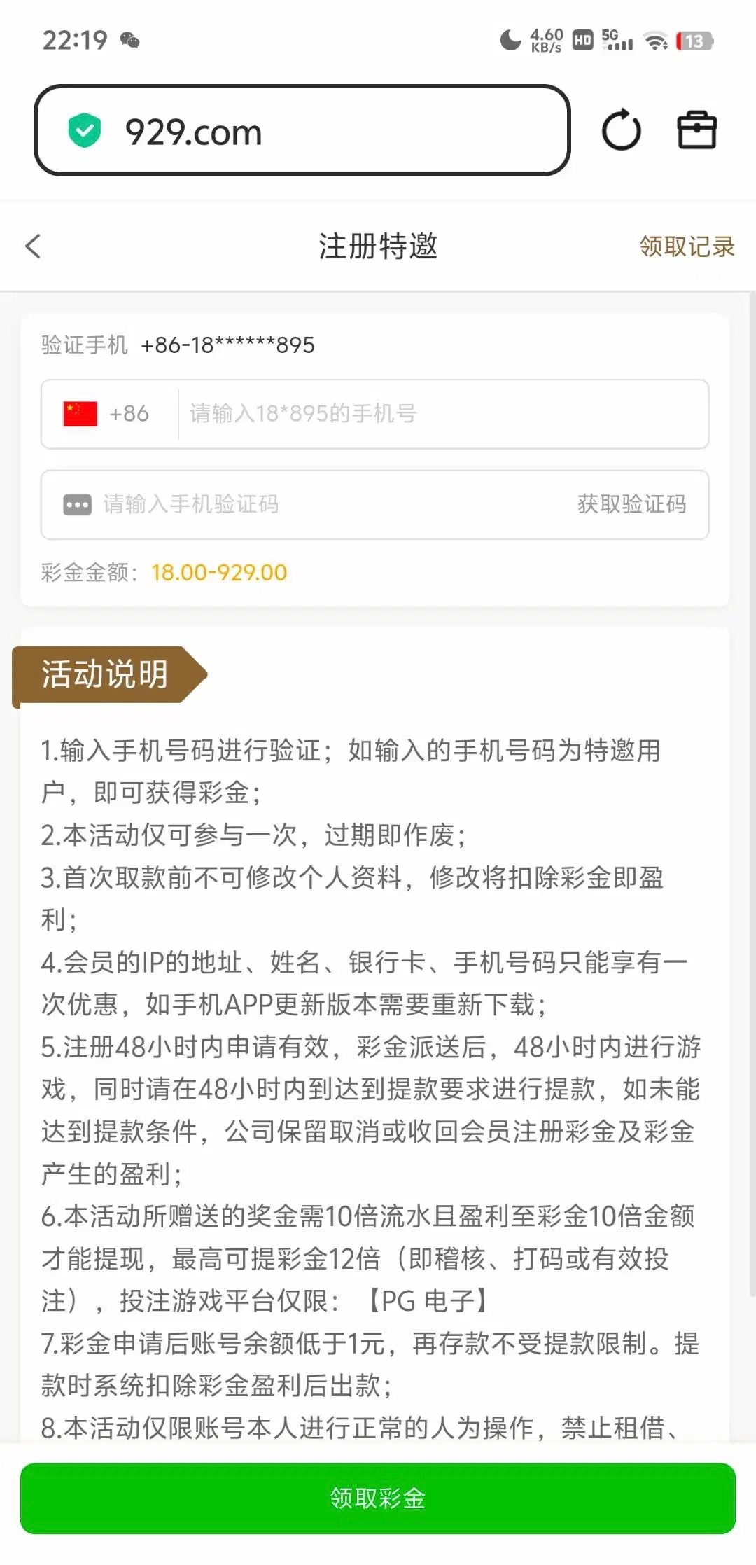 没号的从短信链接进去注册 去优惠领取特邀彩金。