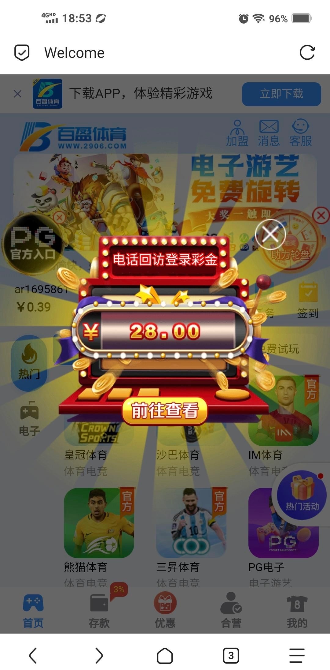 冲过一百,刚登陆自动跳出来,送了28