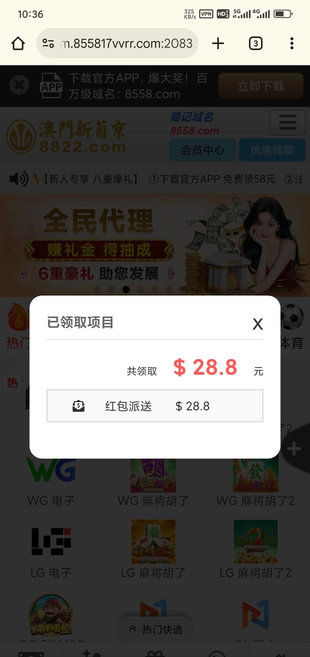 8558和8822虽然说合并了,但是优惠好像不一样,昨天有老哥发8822我上去也有六块多,今天用8558.com 网址登录显示这个神秘彩金,感觉彩金是分开的。