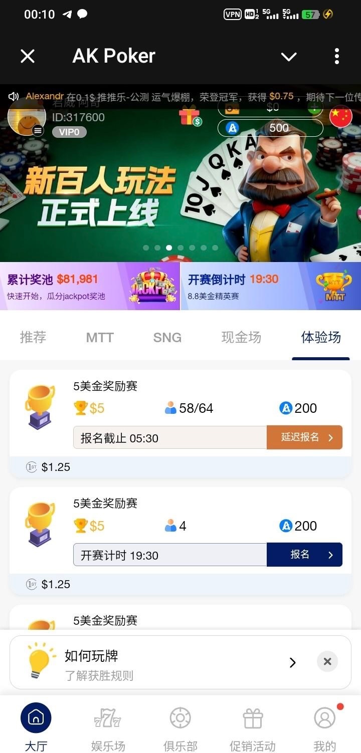 【飞机ak德州扑克】500体验金赛